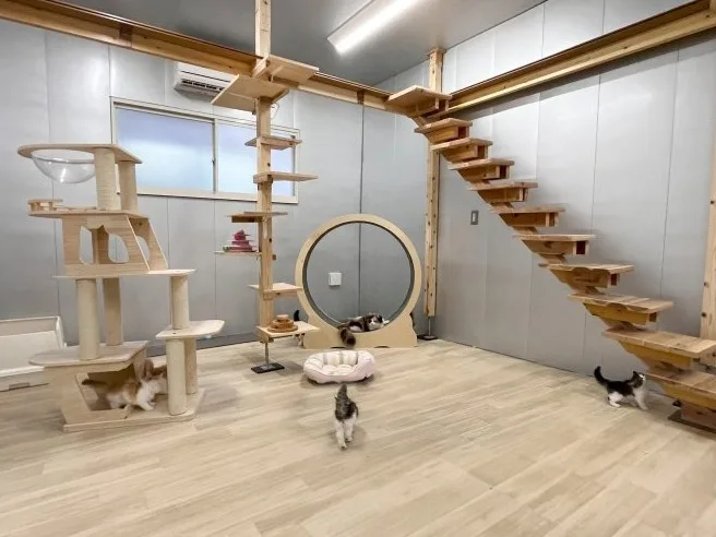 当施設では、一匹一匹の個性と健康を大切にした飼育環境づくりを徹底しています。 広々としたキャットルームを完備し、子猫たちがのびのびと遊び回れる空間を確保。専属の動物看護師による日々の健康チェック、血統管理、遺伝子検査に基づいた計画繁殖を行い、先天性疾患リスクを最小限に抑えています。 食事は月齢・体重・体調に合わせて個別に調整。社会化期にはスタッフとの触れ合い時間をたっぷり確保し、人との暮らしに慣れた、穏やかで人懐っこい子に育てています。